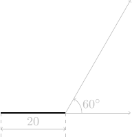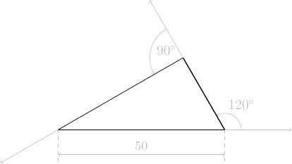 Triangle rectangleEn s'inspirant des exemples précédents, écrire un programme qui dessine un triangle \(ABC\) rectangle en \(A\) avec \(\theta_B = \widehat{ABC} = \pi/6\) et \(a = |BC| = 50\ \mathrm{pas}\).