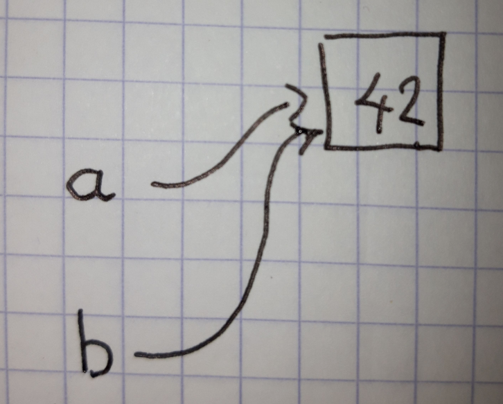 #ici les variables a et b ont été affectées avec la même donnée non mofiable : 1