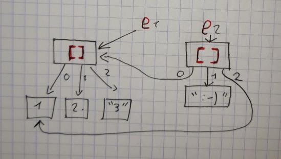 Attention, il vous faut maintenant trouver un papier et un crayon! Nous allons nous entraîner à dessiner des données. Cela va nous aider à comprendre et à concevoir des programmes. Cela permet d’illustrer les notions de références et de données non modifiables très importantes en python.