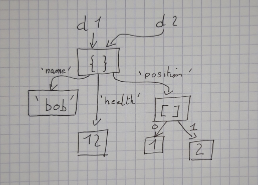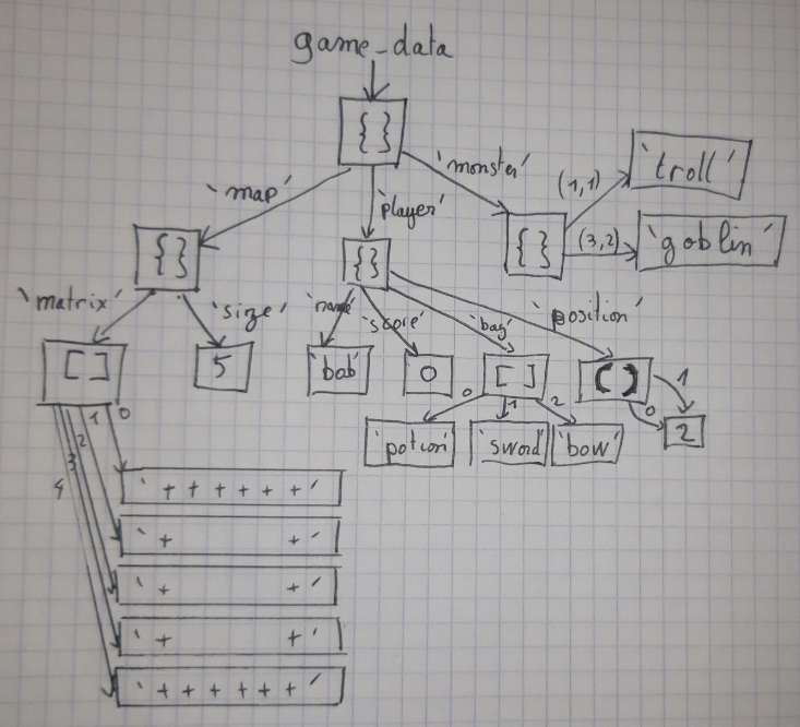 Dès qu’on commence à utiliser des objets, des dictionnaires ou des listes on commence à construire des arbres de données. Le jeu que vous réaliserez mettra très probablement en œuvre des arbres de données. Il s’agit dans un premier temps d’être capable de représenter graphiquement ces arbres pour pouvoir les penser.