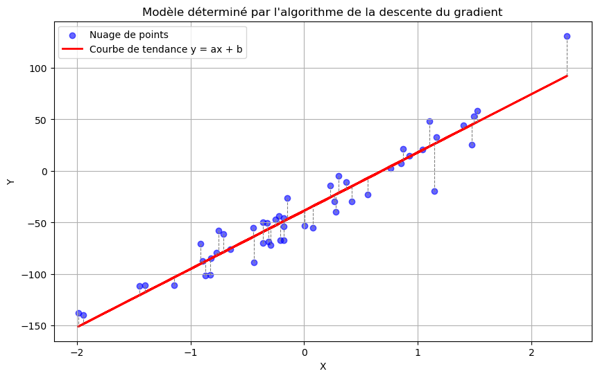 plt.title("Modèle déterminé par l'algorithme de la descente du gradient")