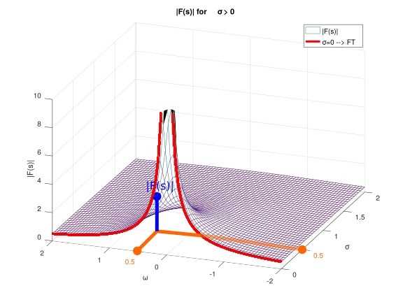 Autrement dit, à chaque point complexe s=σ+j.ω, j’associe un point complexe Y(s), résultat de l’intégrale Y(s)=∫−∞+∞y(t)e−stdt.